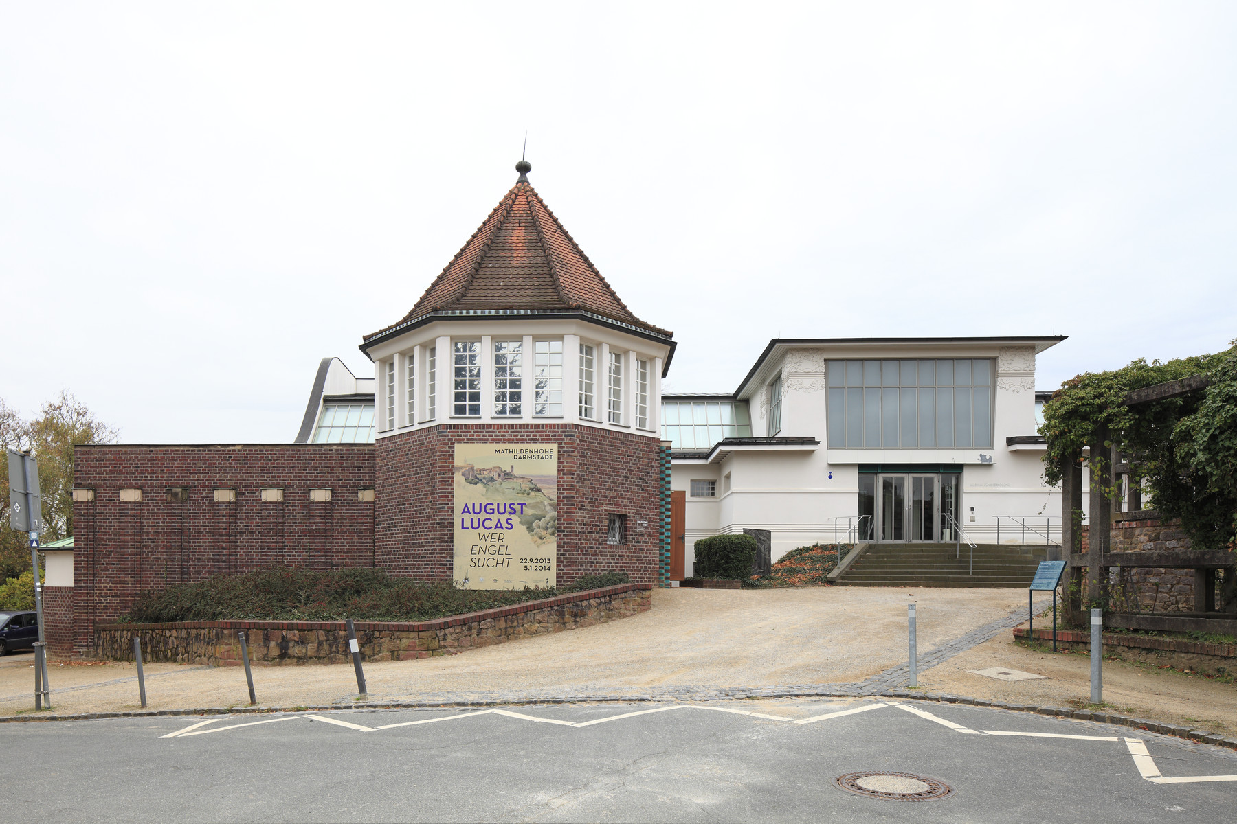 Zur zweiten Ausstellung der Künstlerkolonie auf der Mathildenhöhe 1904 entwarf Joseph Maria Olbrich für das 1901 errichtete Ateliergebäude einen oktogonalen Anbau mit Verbindungstrakt. Als bauliche Erweiterung bot er Arbeitsplätze für zwei Bildhauer mit jeweils separatem Eingang sowie ein kleines Atelier im Oktogon. Gut sichtbar sind die „Oberlichtraupen“ für die Belichtung der Arbeitsplätze. Den beiden Ateliers im Osten vorgelagert befindet sich der Plastikhof, umgeben von Mauerwerk, das mit Klinkerlisenen und hellen Putzflächen gestaltet ist.
